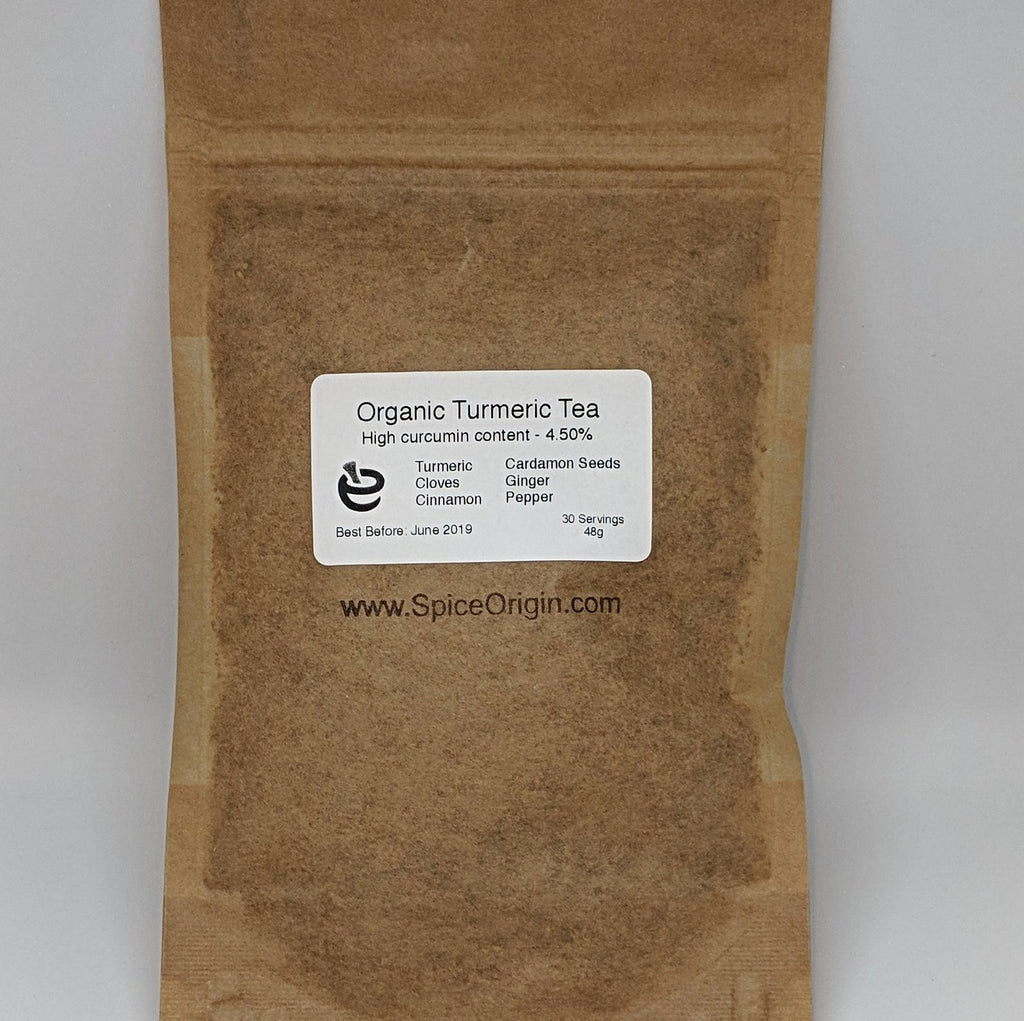 Spice Origin Turmeric Tea includes whole dried Turmeric, Cloves, Coorg Cardamom, Sri Lankan Ceylon Cinnamon and dried Ginger slices for a refreshing and extraordinarily healthy brew.